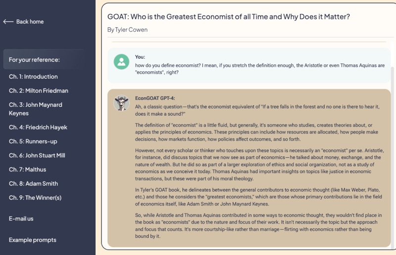 Sample interaction with Tyler Cowen’s GOAT AI-generated book
