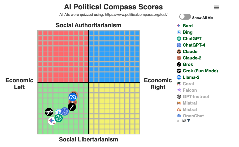 Technology Review summarizes (evernote) a U-Washington paper that claims each LLM has significant political biases Feng et al. (2023)