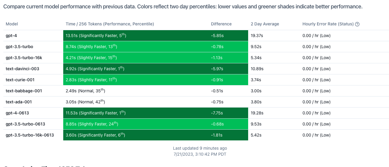 Unofficial dashboard with daily updates of the speed of OpenAI API calls: