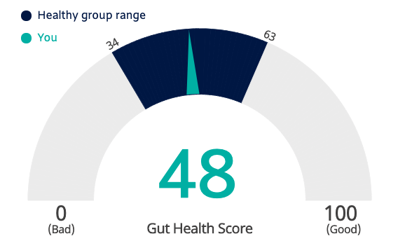 Psomagen summarizes my results into a single “Gut Health Score”, a weighted combination of several more specific variables, including their interpretation of some of my responses to their questionnaire.