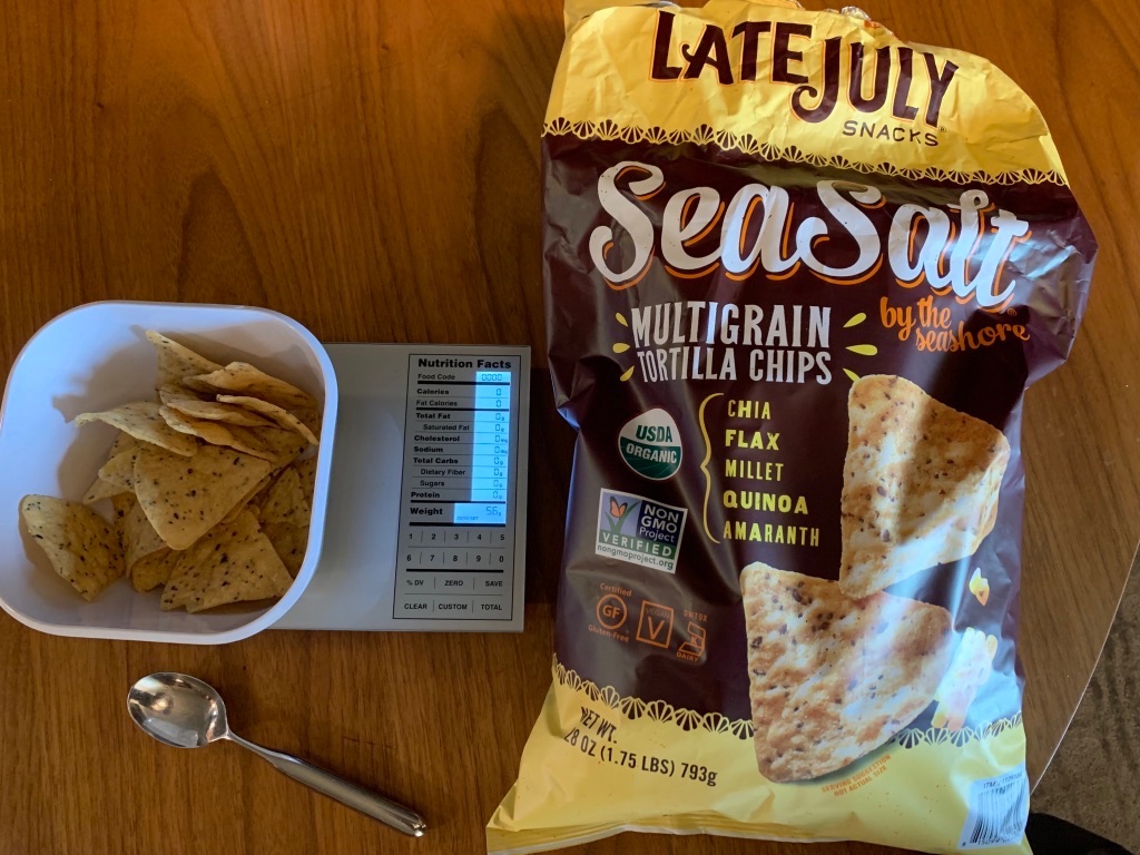 I also tried to understand how much Reducose will affect meals later in the day. After one of the banana experiments above, I waited three hours for my glucose to stablize again and then I ate some whole wheat chips.