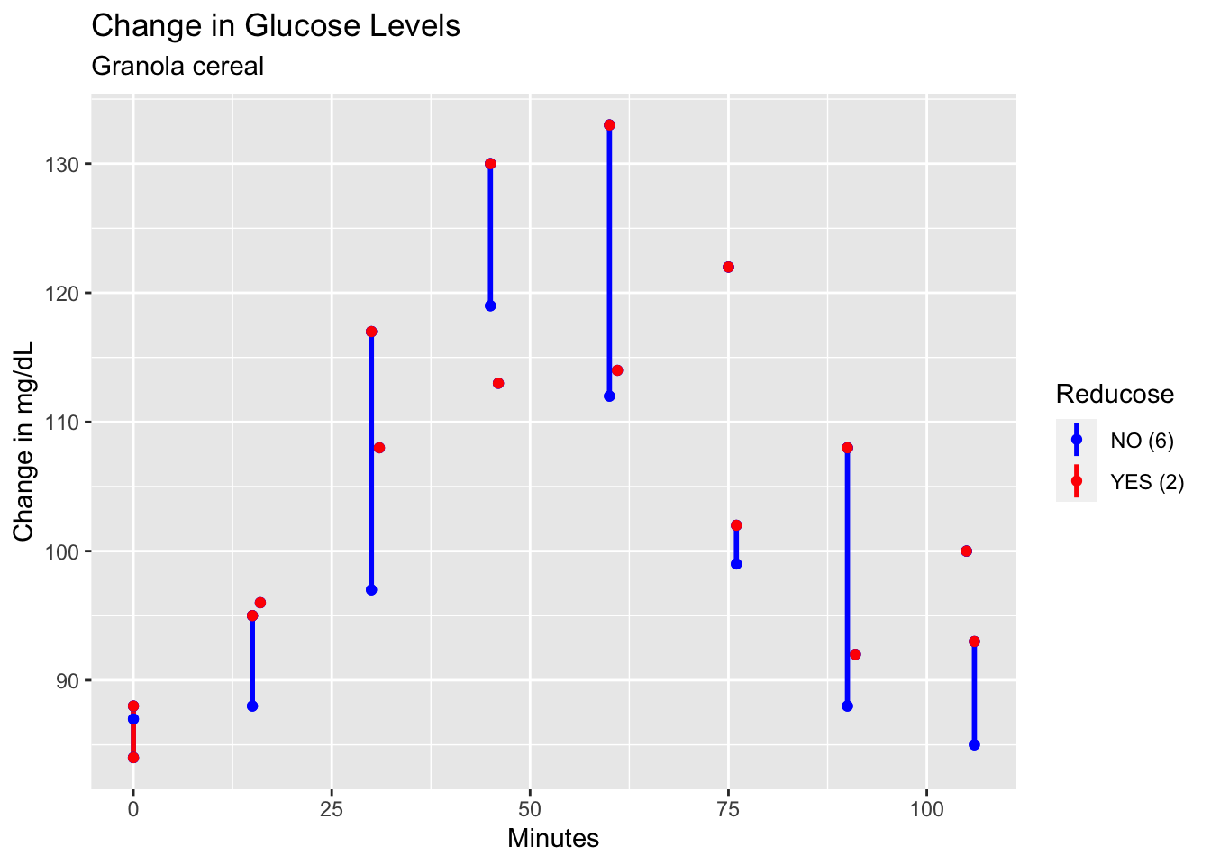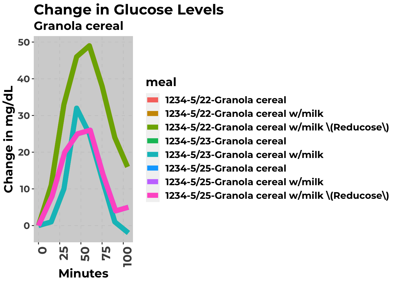 So I tried with some Quaker Oats Granola and milk, whose high sugar content usually produces a big glucose spike: