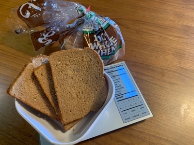 I ate three slices (4.8oz or or about 136 grams) of whole wheat bread at 8:11am. Here’s what I found: